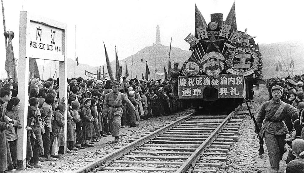 1952年7月1日,成渝铁路全线通车,实现了7000万西南人民长达半个世纪的夙愿。这一天,成渝两地万人空巷。“共产党万岁”“40多年愿望实现了,鞭炮响连天。永远跟着共产党,幸福万万年”的口号和歌声响彻天宇。
