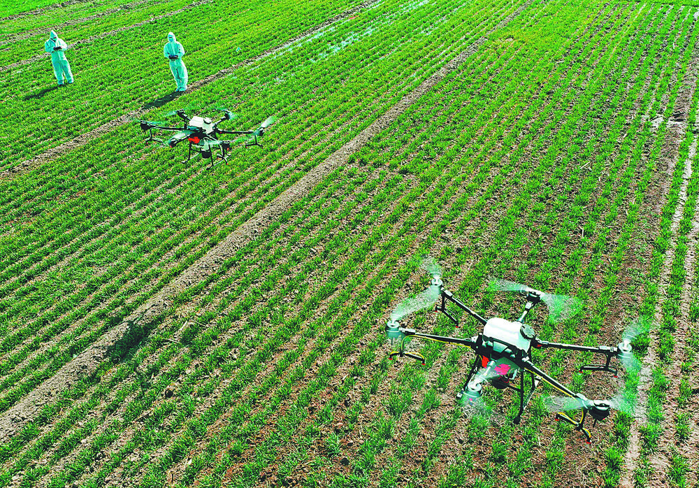 2月20日,陕西省渭南经开区阳曲街道大李村农田里,农技人员正在开展植保无人机施肥作业。当日,渭南市举行智慧农机助力春耕生产现场会,推广农机新技术、新机具,促进农机装备结构的优化,助力春耕生产。崔正博摄(中经视觉)