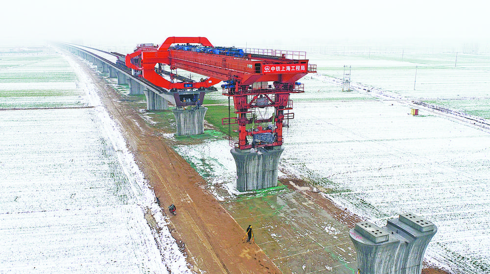 二月二十五日,国家重点工程郑济铁路(山东段)进行大型箱梁架设施工。郑济铁路是国家“八纵八横”高铁网的重要组成部分,计划二〇二三年通车。通车后,郑州至济南通行时间将缩短至一个半小时,郑州至青岛通行时间将缩短至三小时以内。