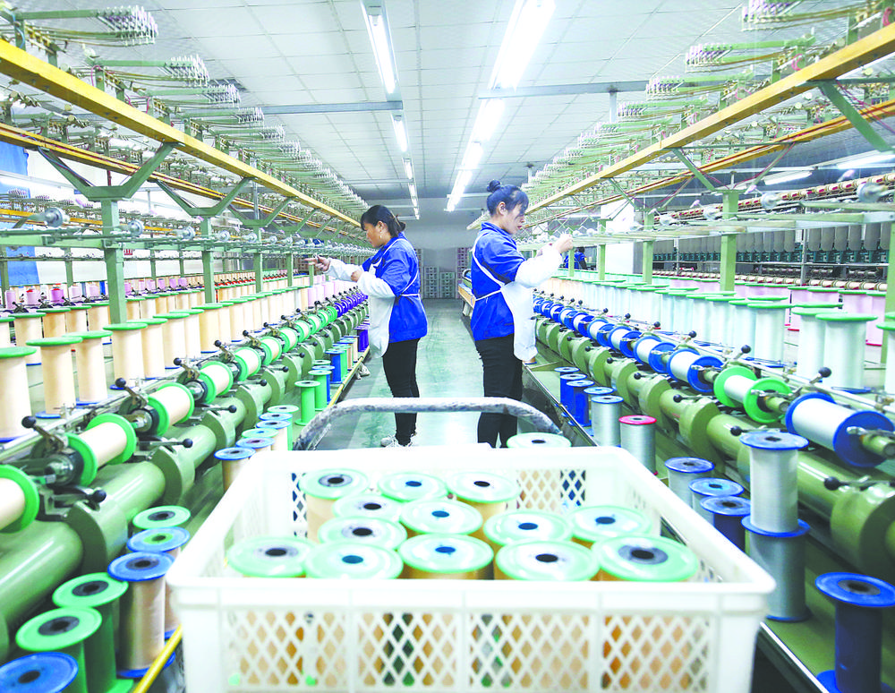 2月26日,工人在重庆市黔江区工业园区内的花神丝绸有限公司生产车间忙碌。春节过后,黔江区工业园区积极协助园区内各类企业组织人力,开足马力生产,确保按时按质完成订单。杨 敏摄(中经视觉)