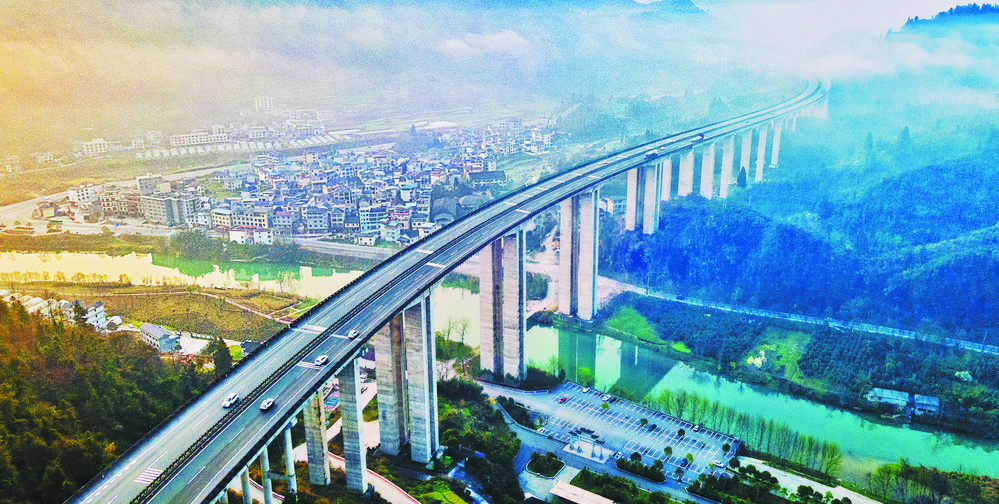 2月22日,云雾缭绕的湖南省湘西土家族苗族自治州吉首市峒河国家湿地公园与大桥和民居相映成趣。吉首市近年来加大了湿地公园的保护力度,有效增强了峒河湿地公园的旅游与休闲功能。