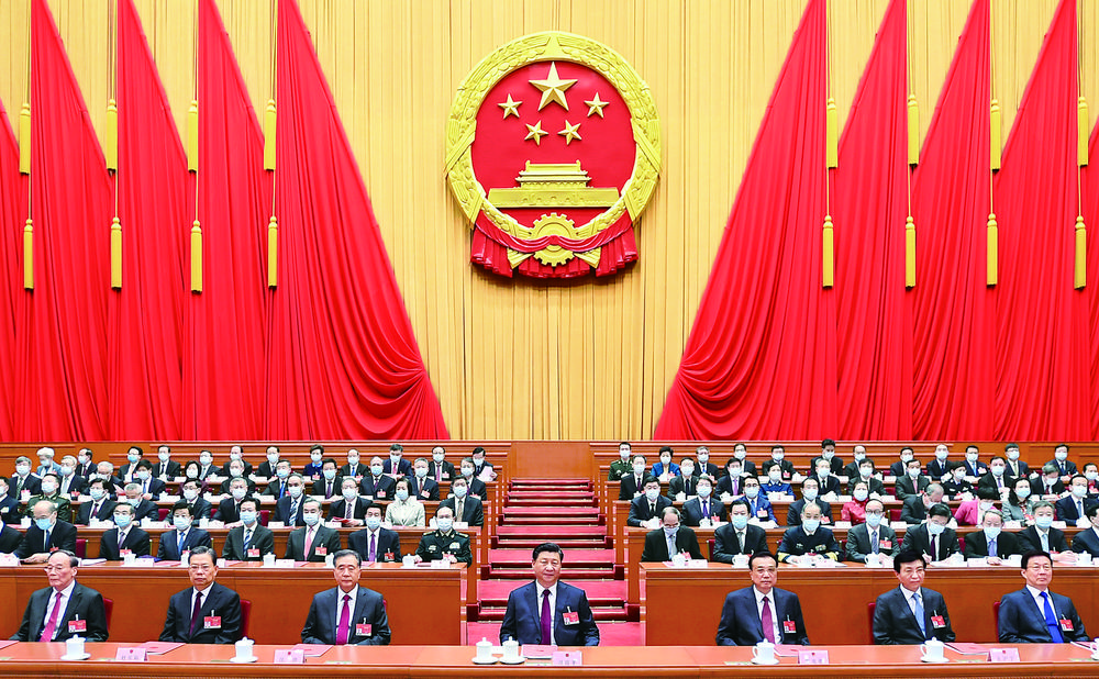 习近平、李克强、汪洋、王沪宁、赵乐际、韩正、王岐山和大会主席团成员在主席台就座。