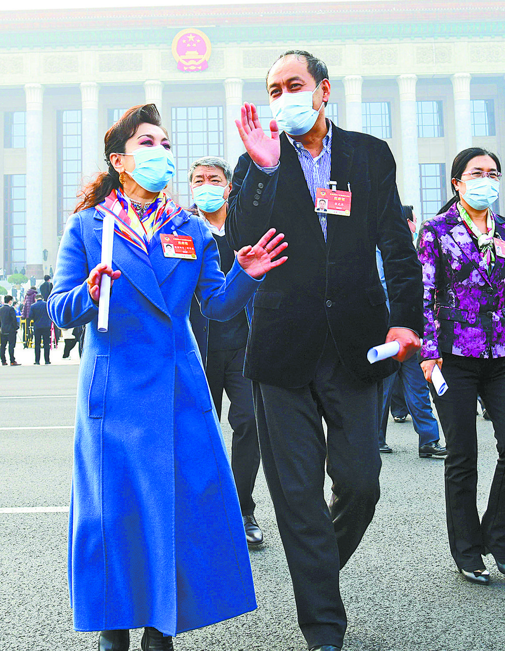 中国人民政治协商会议第十三届全国委员会第四次会议闭幕后,委员们走出人民大会堂。 韩 戈摄(中经视觉)