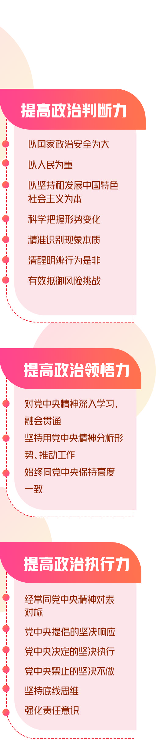 习近平总书记强调,我们党要始终做到不忘初心、牢记使命,把党和人民事业长长久久推进下去,必须增强政治意识,善于从政治上看问题,善于把握政治大局,不断提高政治判断力、政治领悟力、政治执行力。两会闭幕之际,代表委员们纷纷表示,推动“十四五”开好局起好步,开启全面建设社会主义现代化国家新征程,最重要的就是坚持正确的政治方向,保持党的政治本色,要对“国之大者”了然于胸,始终同以习近平同志为核心的党中央保持高度一致,敢于直面问题,敢于承担责任,奋力谱写中国特色社会主义事业新篇章。