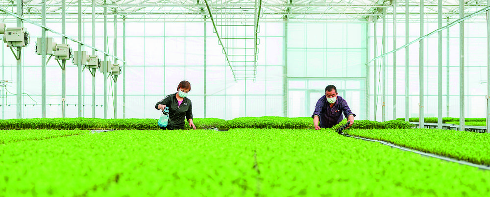 3月11日,新疆库车市阿克吾斯塘乡长水村育苗基地,村民抢抓农时培育辣椒新苗。近年来,当地不断加大现代设施农业建设,增加农牧民收入。袁欢欢摄(中经视觉)