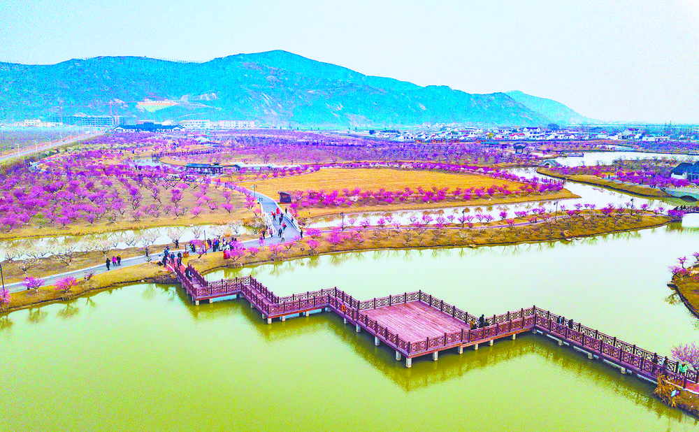 3月13日,江苏省灌云县伊芦山梅园梅花盛开,吸引不少游客前来“打卡”。
