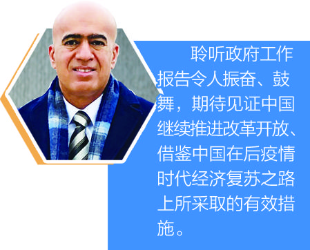 在谈到《政府工作报告》时,扎希里大使表示,2020年中国实现了2.3%的GDP增长,并计划今年实现6%以上的经济增长,这一成就和目标令人印象深刻。今年的《政府工作报告》着重提到了中国在后疫情时代如何恢复经济的一系列举措,以及继续推进改革开放的决心。其中,推动进出口稳定发展、积极有效利用外资、高质量共建“一带一路”、深化多双边和区域经济合作将有助于全球经济在后疫情时代的恢复,阿联酋也将从中受益。
