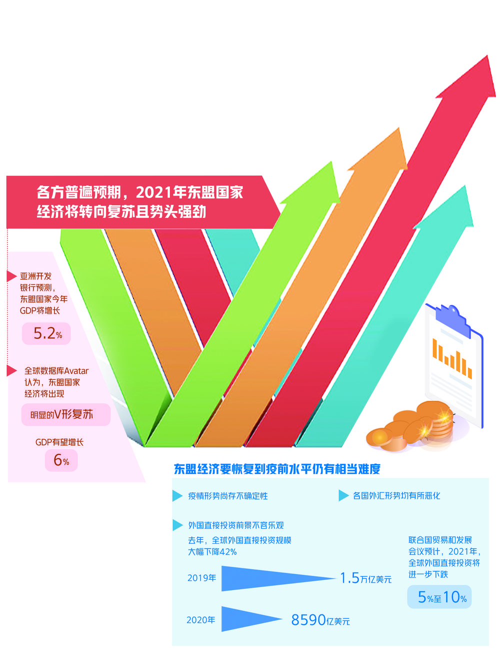 过去一年间,多数国家均受到疫情影响,经济出现衰退。新一年里,尽管东盟国家经济仍存在不确定性,但已经展现出强劲的复苏势头。