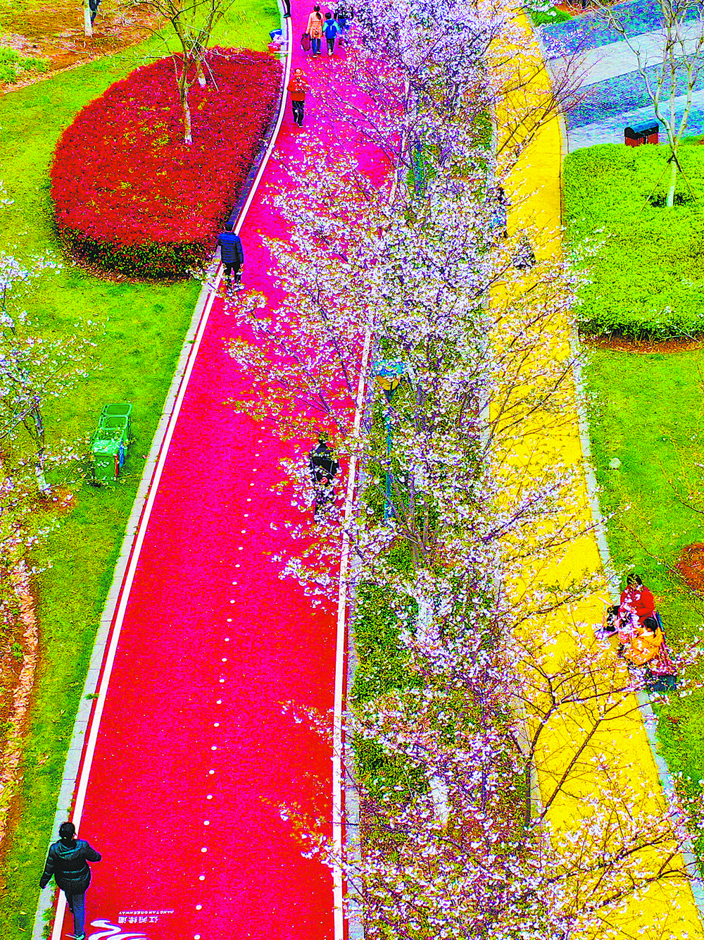 3月21日,江西省南昌市赣东大堤风光带樱花绽放,春色尽收眼底。当地大力发展休闲旅游,吸引众多游客前来观光。 陈文萍摄(中经视觉)