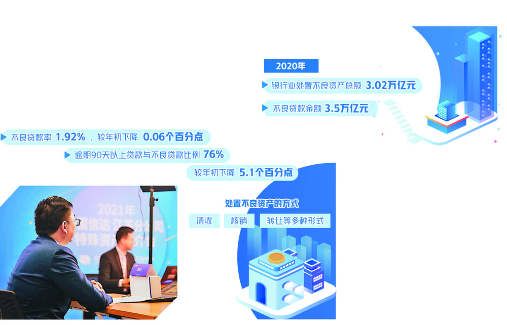 开启批量化转让 需要看到,当前疫情的影响仍未完全消退,实体经济向金融领域传导的滞后效应逐渐显现,业内普遍预计今年上半年不良资产的压力或继续小幅上升,但是仍处可控范围内。“总体上看,与过去几年相比,现在的不良资产结构是有些差异的。”曾刚表示,受疫情影响导致的不良资产,更多是出现在对抗风险能力较弱的中小企业身上。而从分类机构来看,中小银行的不良率上升要显著快于大型银行。 在2021年年初国新办举行的银行业保险业2020年改革发展情况发布会上,公布了这样一组数据:2020年银行业处置不良资产总额达到3.02万亿元。不良贷款余额3.5万亿元,较年初增加2816亿元;不良贷款率1.92%,较年初下降0.06个百分点;逾期90天以上贷款与不良贷款比例76%,较年初下降5.1个百分点。“通过清收、核销、转让等多种形式,处置了这么多不良资产,力度前所未有,金额也是历年最高。”银保监会有关负责人对此表示。 “疫情冲击之下,我国商业银行不良资产压力明显加大。未来货币政策直达实体经济工具等政策逐步退出,商业银行不良贷款面临大幅反弹压力,这要求备足抵御风险的‘弹药’,前瞻性化解不良资产。提高不良资产转让力度,有利于加快不良资产处置步伐,帮助银行优化信贷结构,提高服务实体经济能力。”中国银行研究院高级研究员李佩珈说。 2021年1月12日,银保监会办公厅印发《关于开展不良贷款转让试点工作的通知》,为不良资产批量化转让扫清障碍。“商业银行要以此为契机,加快不良资产处置速度。”在李佩珈看来,商业银行既要做到风险的早发现、早识别,把好风险管理第一道关口。同时,要清收处置把握“抢”字诀,第一时间开展化解工作。“资产清收处置时间越久,清收化解工作效果越差。”李佩珈说。