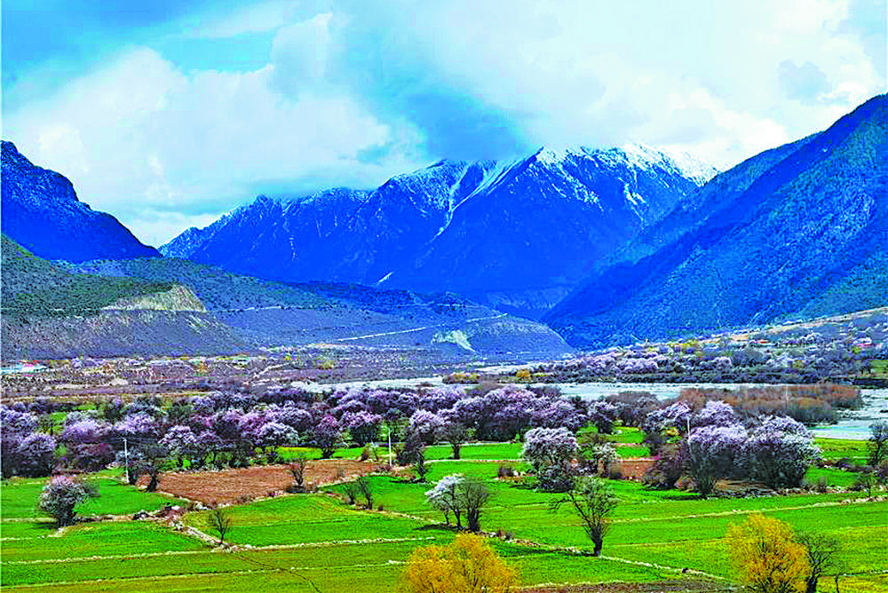 “桃花沟里,一个个村庄旁边,成片的野桃林向着远处的雪山绵延而去,真的太壮观了。”洛桑次仁感叹道。