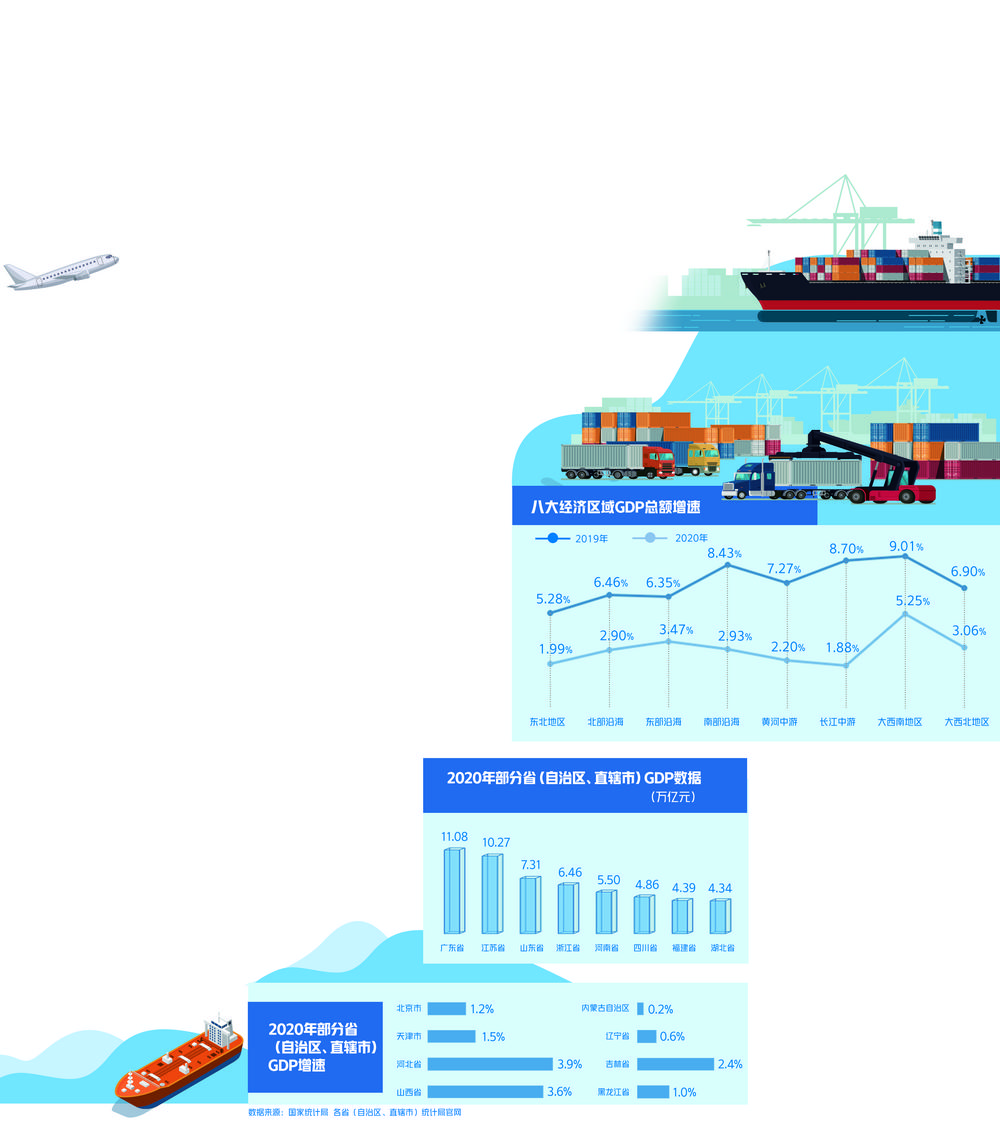 一方面,从外部开放格局来说,欧美发达国家一直是我国长期对外经贸合作的主体,新兴工业化国家也逐渐成为我国对外合作的重点区域。相比而言,亚非拉地区的发展中国家在我国的对外合作规模占比仍较低,这不利于我国对外贸易发展方式的转变和风险规避,未来应在“一带一路”框架下继续加强与沿线国家合作,包括通过贸易、投资、对外援助等多种方式,扩大我国优势产能、技术的海外合作范围;另一方面,从内部空间格局来说,我国长期“东强西弱”“海强边弱”的局面仍没有改变。从东中西区域的经贸发展平均水平看,2001年至2020年中部地区各省(自治区、直辖市)GDP平均值约为西部地区的2倍,而东部地区则是西部地区的4倍,同时东部地区的平均出口额远远高于中西部地区。从八大经济区域的经济发展速度看,2001年至2020年大西北地区GDP总额增速相对较慢,沿海地区GDP总额增速趋于稳定,大西南地区2010年以后增速较快,值得重视的是,东北地区2013年以后增速明显放缓。从各省(自治区、直辖市)经贸发展现状来看,出口对于经济的拉动作用依然不可忽视,广东、江苏、山东、浙江是2020年GDP贡献最大的省份。据此,推动高水平发展应从以前的东部沿海为主的模式向沿海与内陆联动转型,推进我国东部与中西部地区优势互补,协同发展。对东部优势地区来说,继续巩固固有优势,推进从传统加工基地向制造业基地转型升级,进一步推进服务业对外开放的先行先试,真正发展成为有核心竞争力的国际经济聚集地。在此基础上,更好地发挥东部地区带动与辐射发展效应,充分结合中西部地区特有资源和技术优势,促进不同地区间的产业梯度转移与承接,培育内陆地区新的加工核心区。同时,加强沿边地区经济合作园区的建设,推进中西部地区与“一带一路”沿线国家基础设施的互联互通建设工作,将过去的边陲发展成为今日的前沿。加快内陆自由贸易园(港)区建设和“无水港”网络建设,搭建内陆对外开放新载体,提升内陆外贸产业竞争力。