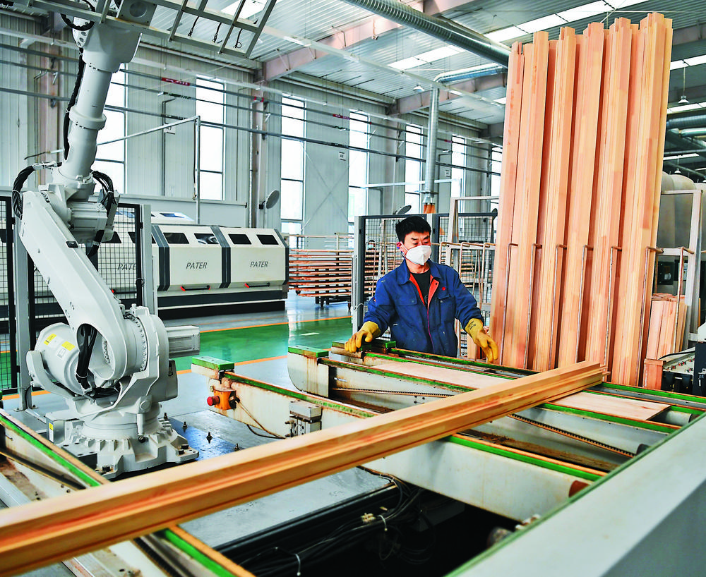 3月31日,河北省高碑店市奥润顺达窗业有限公司工人在生产车间工作。门窗产业是河北省高碑店市的传统支柱产业。近年来,高碑店市引导当地门窗企业立足市场需求,以科技创新为引领,加快科技成果转化,充分发挥产业龙头的聚合、辐射和带动效应,着力打造门窗特色产业集群,推动当地由传统门窗向智慧门窗转型升级。新华社记者 朱旭东摄