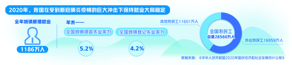 就业是最大的民生,也是经济发展最基本的支撑。我国向来高度重视就业工作,将就业工作作为提升民生福祉的重要内容,在提高就业质量和人民收入水平上不断取得积极进展。“十三五”时期,我国城镇新增就业超过6000万人。在“十四五”时期经济社会发展主要目标中,“实现更加充分更高质量就业”是一项重要内容。今年的《政府工作报告》将“城镇新增就业1100万人以上,城镇调查失业率5.5%左右”作为今年发展主要预期目标之一,提出“就业优先政策要继续强化、聚力增效”的要求。对此,我们需坚持实施就业优先战略,积极谋划和推动新发展阶段的就业工作。