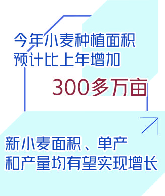 目前,我国小麦库存充实、储备充足、供给充裕,保供稳市具有坚实的物质基础。从目前小麦生产情况看,今年小麦种植面积有所恢复,预计比上年增加300多万亩。“今年新小麦面积、单产和产量均有望实现增长,丰收在望。”王晓辉说,“我国小麦库存充足,调控强而有力,能够保持市场平稳运行。”