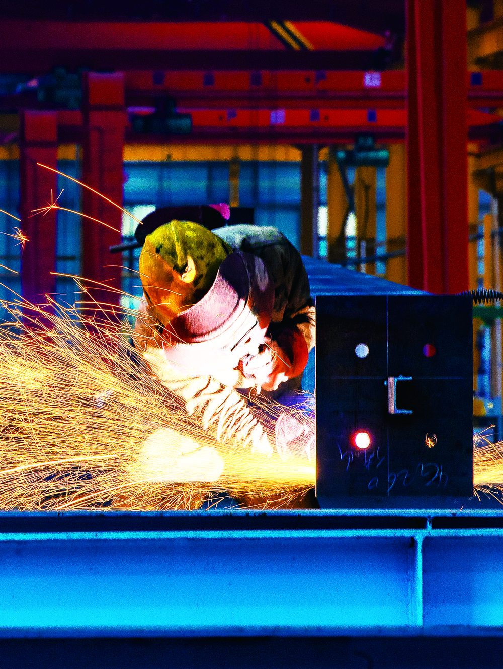 近日,江西省新余市袁河经济开发区一家装配式建筑企业钢铁产品加工线生产红火,工人在赶制国内重点工程订单产品。近年来,新余市工业园区瞄准“绿色、环保、节能”,加快制造业转型升级、提质增效,通过构建新型制造业体系推动制造业向高端化、智能化、绿色化转变。赵春亮摄(中经视觉)