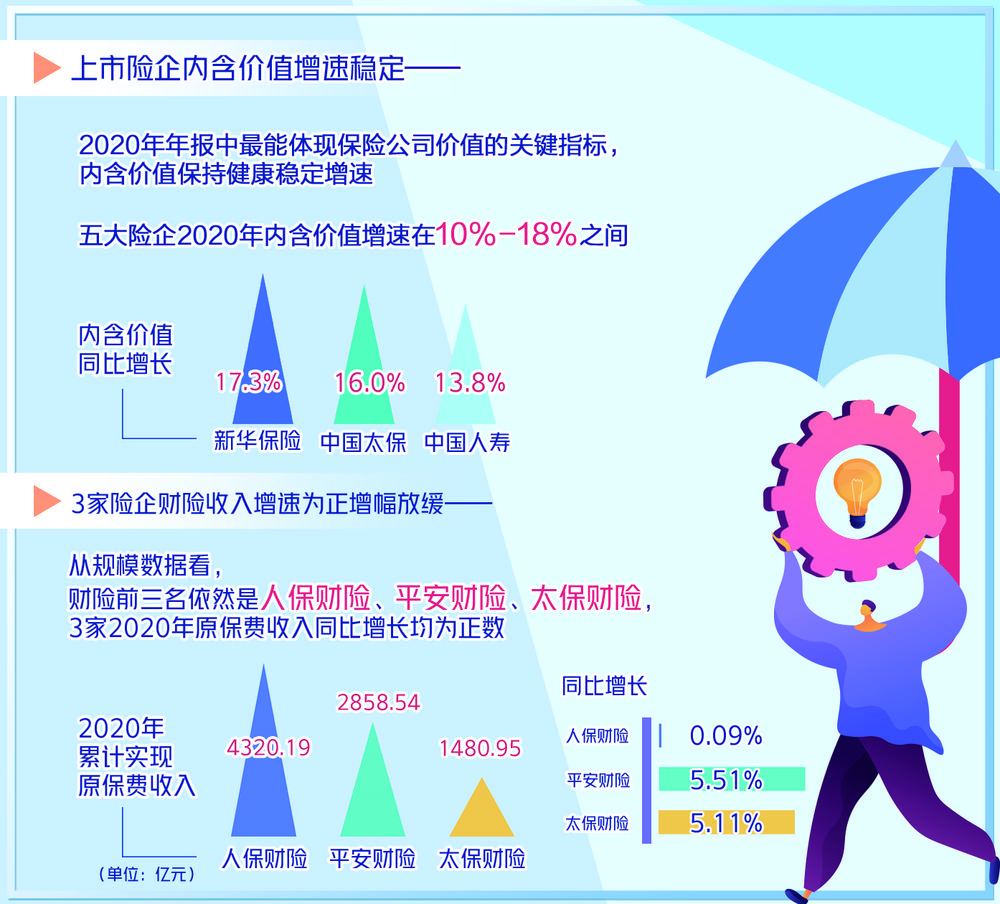 截至目前,A股5家保险上市公司已经悉数披露2020年年报。数据显示,2020年上市险企累计实现原保险保费收入2.49万亿元,同比增长3.65%,占比超过全行业一半。经历了2020年的新冠肺炎疫情,能保持如此业绩,实属不易。