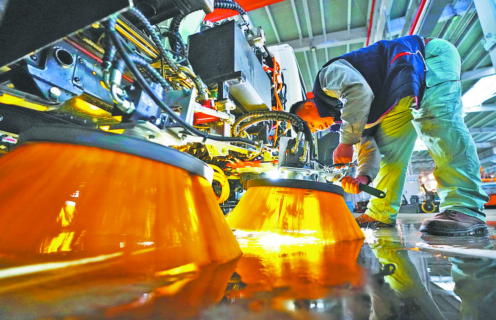 2014年以来,河北省乐亭县先后引进京津产业转移项目70余个,涉及装备制造、新型能源、生物医药等领域。图为由北京转移到乐亭县的一家电动环卫车制造企业的工人在车间内工作。新华社记者 牟 宇摄