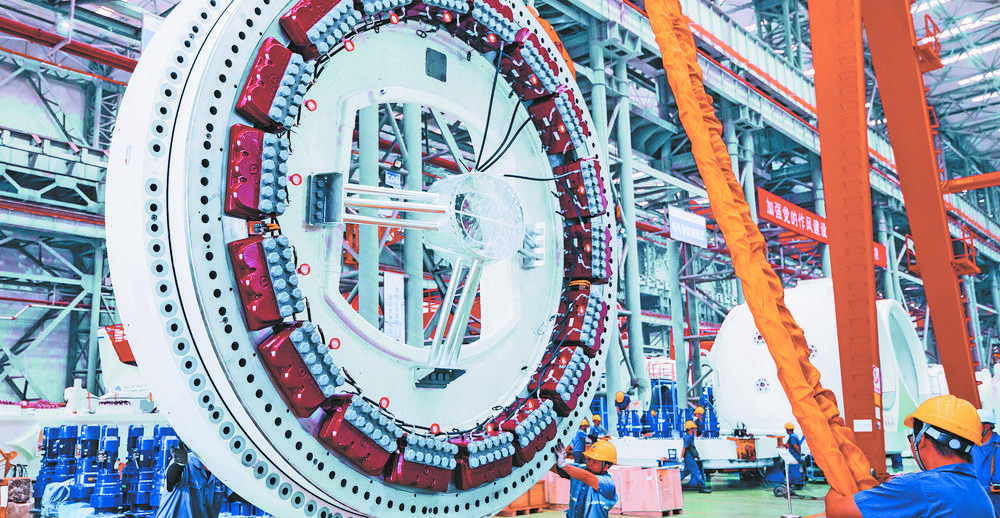 4月9日,广东省阳江市明阳智能制造中心装配车间,工人们忙于装配零件,赶制订单,该公司产品主要服务沿海地区海上风电产业发展。
