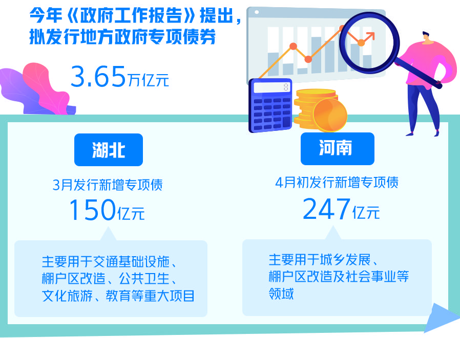 当前各地公布的资金投向也说明了这一点。比如,湖北3月发行新增专项债150亿元,主要用于交通基础设施、棚户区改造、公共卫生、文化旅游、教育等重大项目。河南4月初发行新增专项债247亿元,资金主要用于城乡发展、棚户区改造及社会事业等领域。