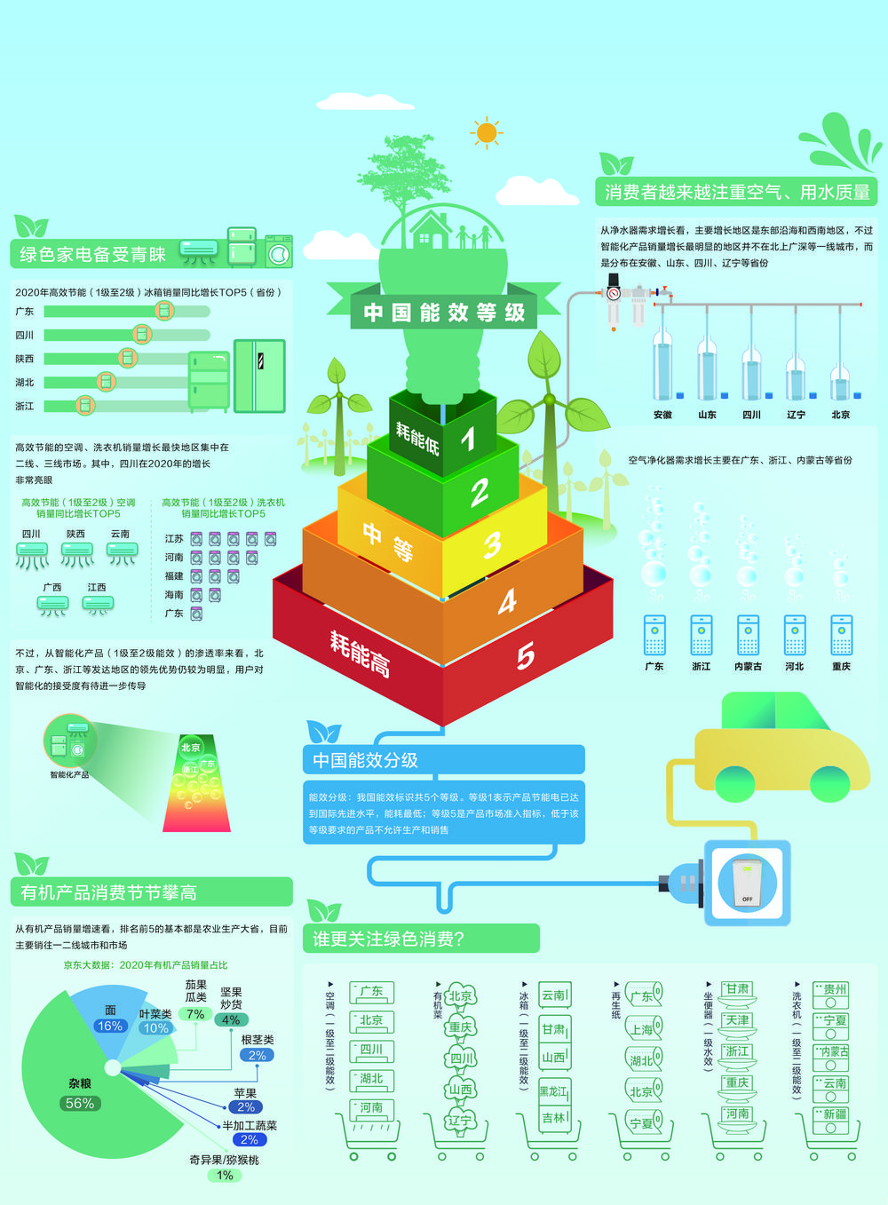 居家生活,绿色家电备受青睐;买车代步,新能源车逐渐成首选;逛街购物,更多人开始关注环境友好产品……如今,绿色消费已成为势不可挡的潮流,不仅消费品类越来越丰富,涵盖母婴、家电、食品、汽车等多个领域。同时,绿色环保理念也已成为社会新风尚,影响并改变着越来越多的人。