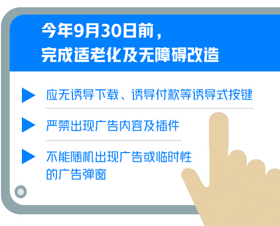 为帮助老年人、残疾人等重点群体平等便捷地获取、使用互联网应用信息,工业和信息化部近日印发《关于进一步抓好互联网应用适老化及无障碍改造专项行动实施工作的通知》,要求相关互联网网站、APP在今年9月30日前,参照《互联网网站适老化通用设计规范》和《移动互联网应用(APP)适老化通用设计规范》完成适老化及无障碍改造,并分别向中国互联网协会、中国信息通信研究院申请评测。