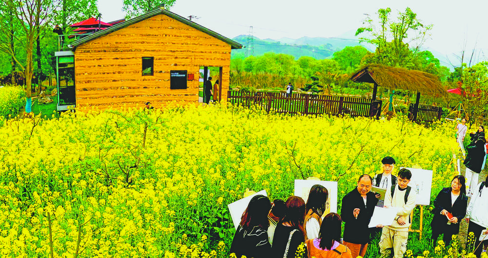近日,游客在浙江省湖州市吴兴区妙西镇油菜花田拍照游玩。近年来,妙西镇依托优越的自然生态资源和深厚的历史文化底蕴,坚持以大景区理念持续推动旅游产品、模式、业态创新,精心打造“西塞山”生态旅游品牌,生态红利不断显现,生态旅游快速发展,让“美丽经济”持久绽放。
