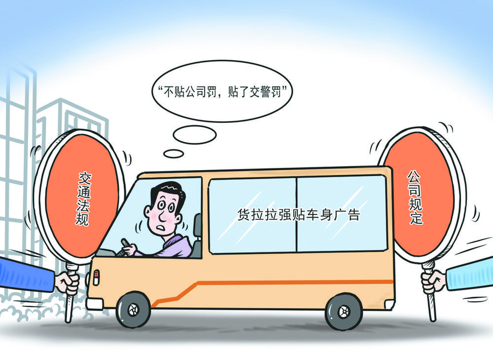 近日,货拉拉强制司机贴车身广告一事再度引发关注。我国道路交通安全法实施条例规定,机动车喷涂、粘贴标识或者车身广告的,不得影响安全驾驶,否则将受到相应处罚。“不贴公司罚,贴了交警罚”,司机左右为难,不知如何是好。企业开展推广营销活动无可厚非,但须在法律法规框架内进行,绝不能让公司的要求凌驾于法律法规之上,更不能拿行车安全当儿戏。(时 锋)