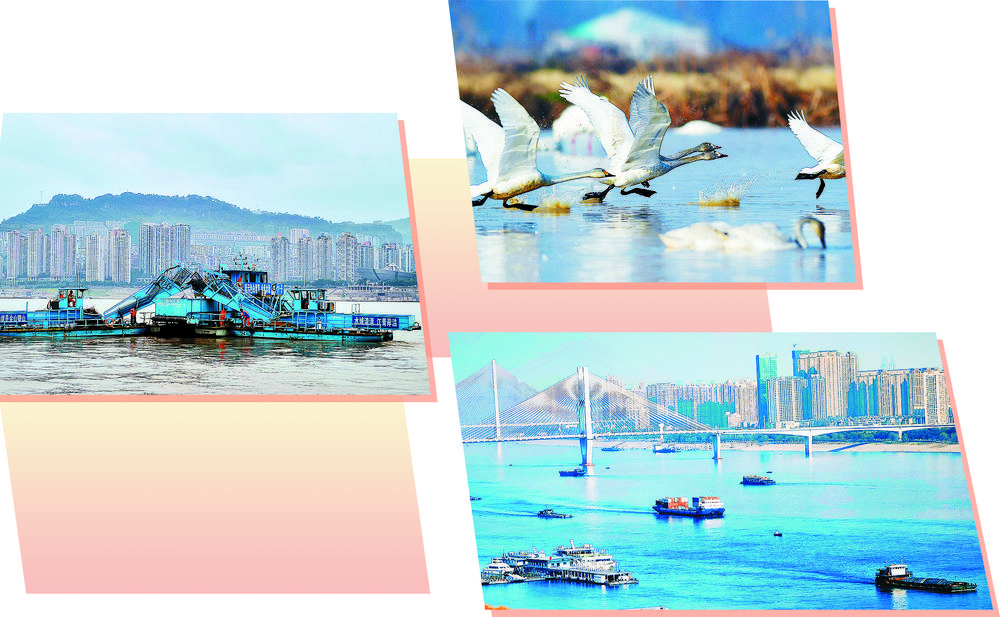 图① 重庆万州区的机械化清漂船在长江上进行作业。吴陆牧摄