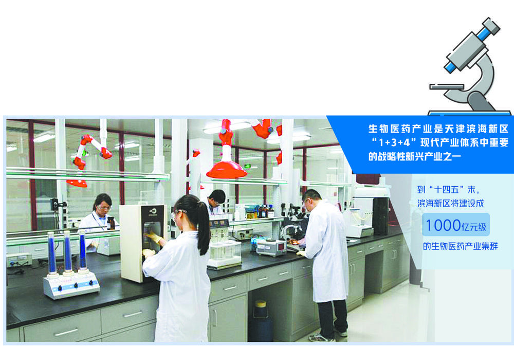 天津市委常委、滨海新区区委书记连茂君在接受本报记者采访时表示:“生物医药产业是滨海新区‘1+3+4’现代产业体系中重要的战略性新兴产业之一。到‘十四五’末,我们将建设成1000亿元级的生物医药产业集群,成为具有国际竞争力的生物医药产业均衡发展、融合发展的先行区。”