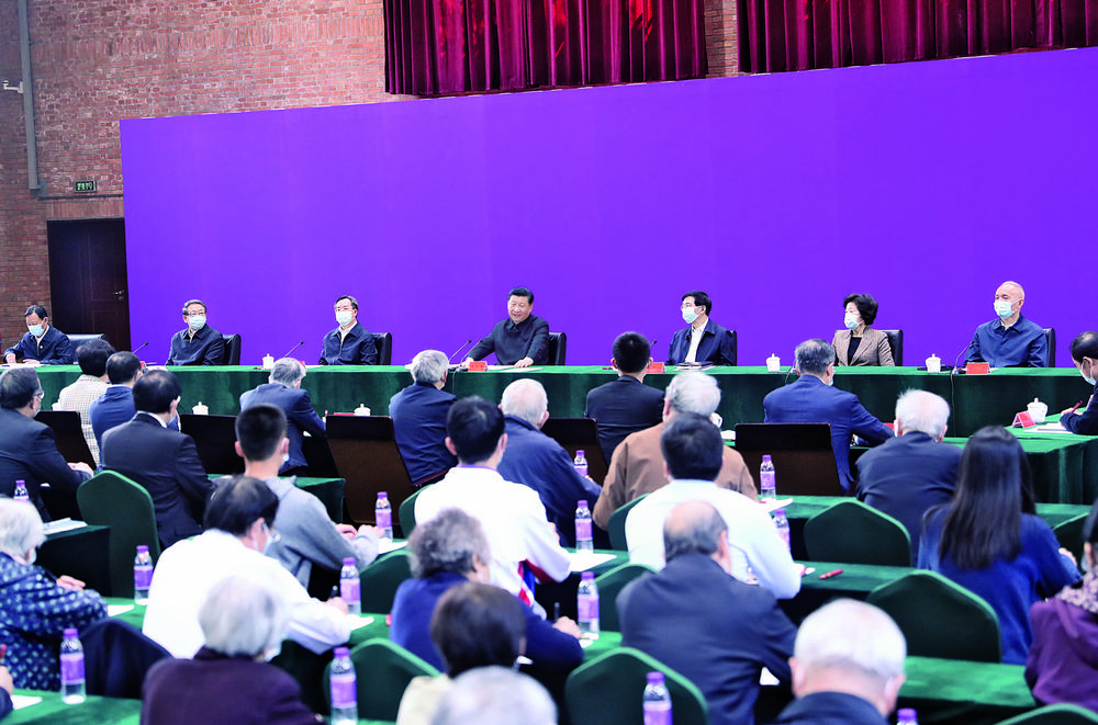 在主楼二层大厅,习近平看望部分老教授、中青年骨干教师代表并同他们亲切交谈。习近平感谢在教学科研岗位上默默耕耘、辛勤奉献、作出突出贡献的老师们,向老教授们表示敬意,勉励中青年教师继续在教书育人和科研创新上不断有新进步。他强调,清华大学秉持自强不息、厚德载物的校训,深化改革、加快创新,各项事业欣欣向荣,科研创新成果与国家发展需要丝丝相扣,展现了清华人的勇毅和担当。面向未来,清华大学要坚持把立德树人作为根本任务,把服务国家作为最高追求,把学科建设作为发展根基,把深化改革作为强大动力,把加强党的建设作为坚强保证,不忘初心、牢记使命,为党育人、为国育才,为实现第二个百年奋斗目标、实现中华民族伟大复兴的中国梦、推动人类文明进步作出新的更大的贡献。
