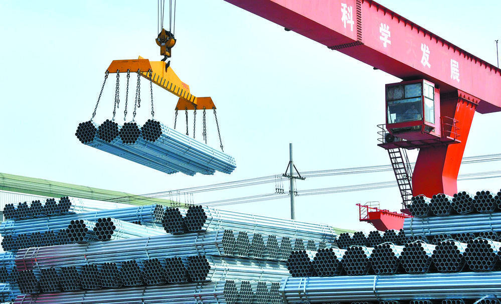 近日,河北省邯郸市永年工业园区,工作人员在吊运出口海外的镀锌钢管产品。近年来,永年区通过用活扶持政策、搭建融资平台、推进技术创新等方式,积极优化民营经济发展环境,助推当地经济高质量发展。