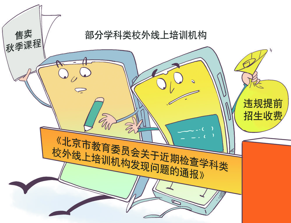 近日,北京市教委印发近期检查学科类校外线上培训机构发现问题的通报,指出学而思网校、高途课堂等机构提前售卖秋季课程,违规提前招生收费,误导学生报名缴费等问题。相关问题暴露出当前学科类校外线上培训市场的某些不规范问题。对此,除了应责令相关机构及时作出整改,相关部门还应联合开展市场监管查处,切实规范学科类校外线上培训秩序。(时 锋)