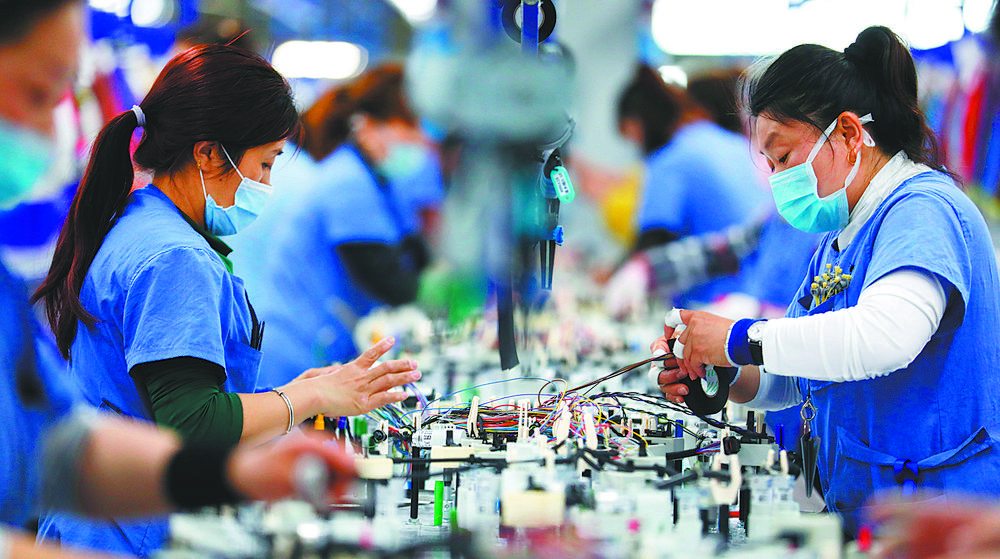 图② 2020年4月23日,德科斯米尔(鞍山)线束系统有限公司的工人在车间内生产。新冠肺炎疫情好转后,辽宁省鞍山经济开发区积极助力重点外资企业有序复工复产。