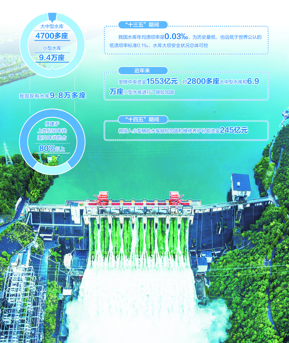 水库是开发利用水资源和防治水灾害的重要工程措施之一,对防洪、供水、生态、发电、航运等至关重要。我国现有水库9.8万多座,其中大中型水库4700多座、小型水库9.4万座,80%以上修建于上世纪50年代至70年代。近年来,我国大规模集中开展了几轮病险水库的除险加固,取得了明显成效。