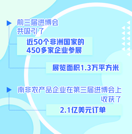 4月28日,第四届进博会非洲地区线上推介会成功举办。中国国际进口博览局副局长刘福学在推介会上介绍,进博会在促进中非贸易中扮演着重要角色,前三届进博会共吸引了近50个非洲国家的450多家企业参展,展览面积1.3万平方米。中国驻南非使馆经商处公参赵中屹表示,南非农产品企业在第三届进博会上收获了2.1亿美元订单,进博会已成为深化中南经贸合作的重要平台。