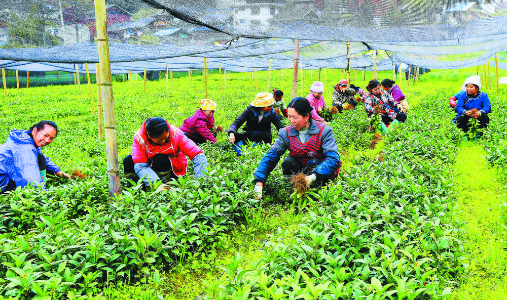图① 贵州省黔东南苗族侗族自治州榕江县大力发展林下经济,通过推广种植草珊瑚,既巩固脱贫攻坚成果,又助力乡村振兴。图为村民在榕江县古州镇头塘村草珊瑚育苗基地摘取草珊瑚苗。 李长华摄(中经视觉)