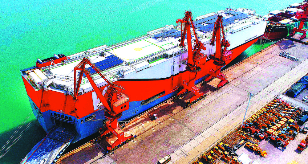 4月29日,在江苏连云港港66号泊位,3053台汽车驶入日本川崎滚装船公司御绿快航轮,该次作业刷新连云港港单次汽车出口量纪录。