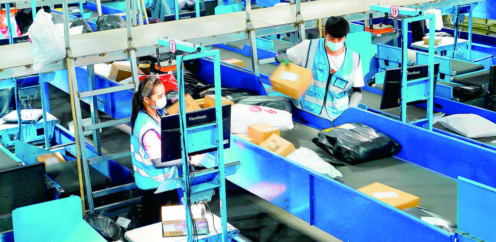 5月4日,河北省白沟新城中通快递进出港分拣自动化操作车间,员工正在分拣包裹。“五一”假期,坚守在岗位上的劳动者用勤劳的汗水谱写奋斗之歌。冯 云摄(中经视觉)
