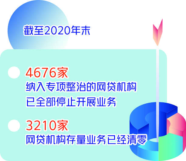 据了解,截至2020年末,4676家纳入专项整治的网贷机构已全部停止开展业务。同时,中央部门和地方建立常态化监测机制,及时取缔违规机构。截至2020年末,3210家网贷机构存量业务已经清零,对存量尚未清零的机构,建立跟踪机制定期通报督导。