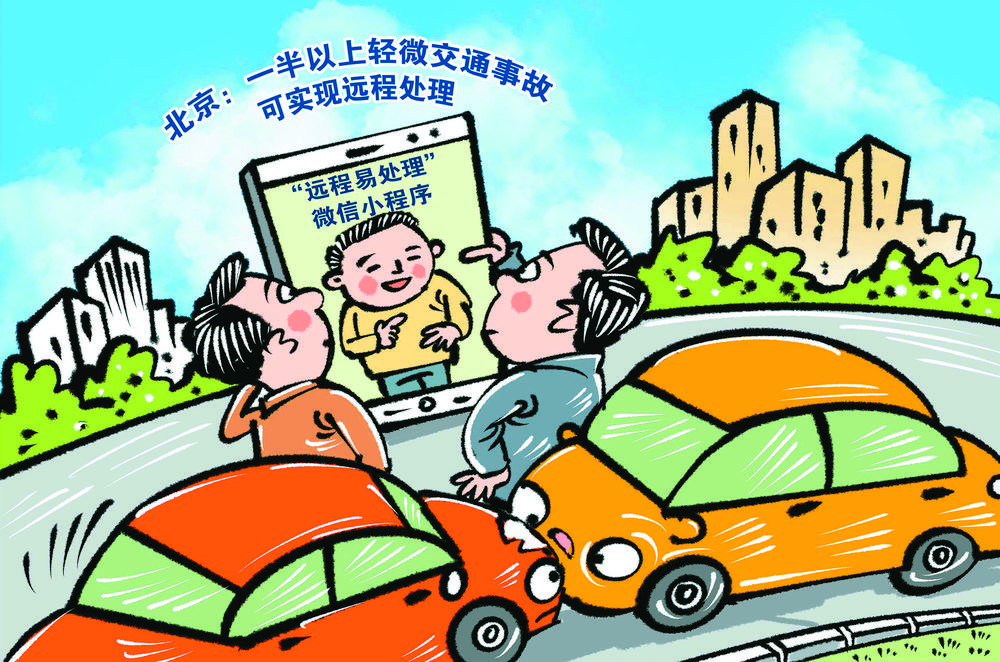 如今,在北京发生轻微交通事故,如果双方责任明晰,通过“远程处警”,5分钟左右即可处理完毕。“远程处警”改变了以往交警到现场判定事故责任的处理方式,突破时空限制,交管部门、保险公司等相关主体实现了一体办公、一键处警、一拍取证、一网处理、一站办结。