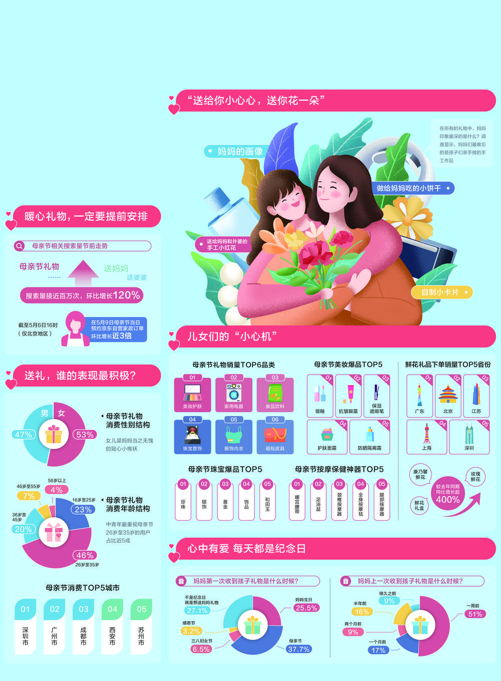 “听我说谢谢您,因为有您温暖了四季;谢谢您,感谢有您世界更美丽……”5月9日,母亲节如期而至,我们用什么对妈妈表达感恩和爱?这个母亲节,经济日报携手京东发布消费数据,帮助大家划重点,讨得妈妈的欢心。