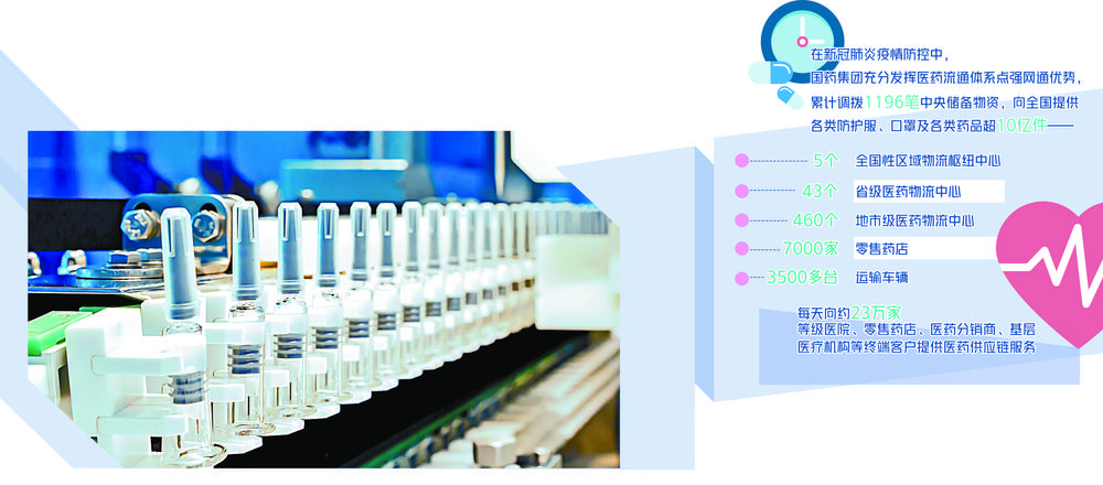 在新冠肺炎疫情防控中,依托覆盖全国各地的物流中心、运输车辆、仓储设施,国药集团充分发挥医药流通体系点强网通优势,全力为抗疫大战提供“弹药”,累计调拨1196笔中央储备物资,向全国提供各类防护服、口罩及各类药品超10亿件。