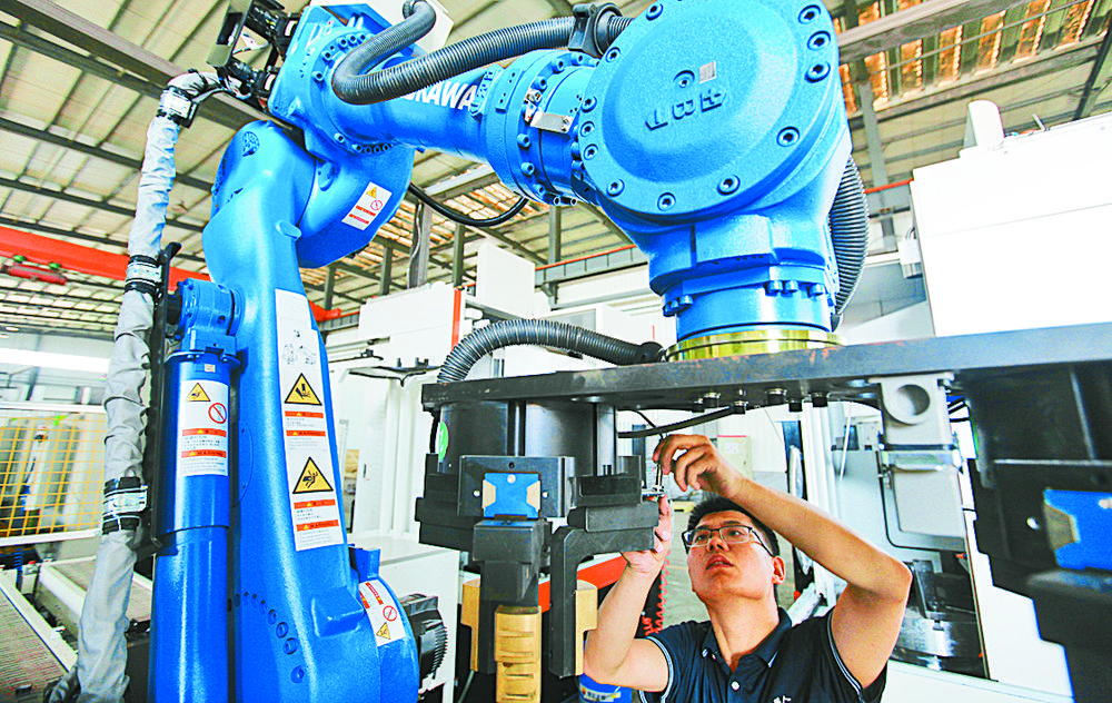 ③山西灵石亨泰荣和金属压铸件有限公司,工人在安装机械手。该公司通过创新转型,成为国内铸造行业领头羊。 唐伟青摄(中经视觉)