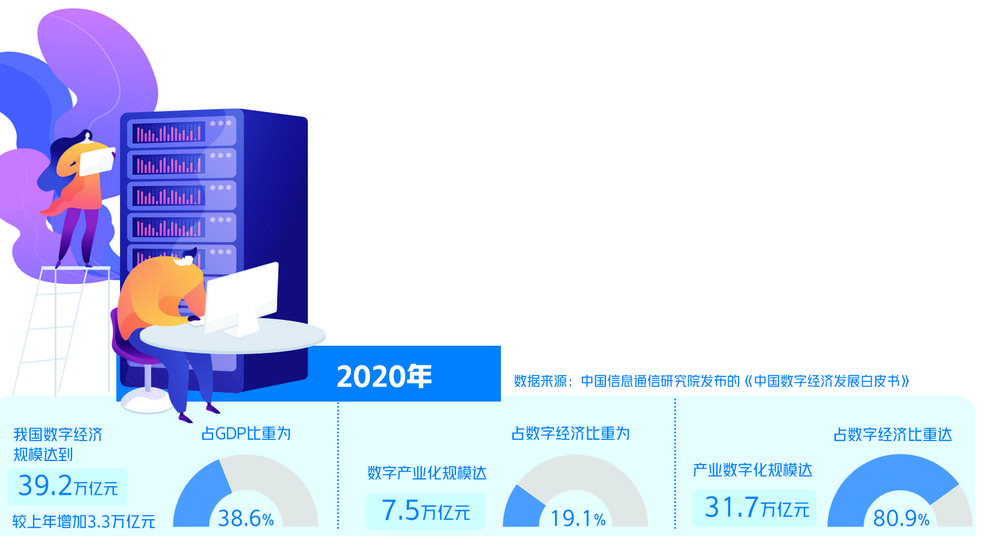 当前,5G、大数据、人工智能、区块链等技术加速向各行业融合渗透,数字技术和数据要素的应用场景较为多元,其对传统产业的赋能作用日益凸显,数据产业发展的态势也备受关注。具体来看,农业数据已经成为“新农具”,精准化种养取得积极进展,使得农业生产在增产增收的同时可实现从生产到消费全过程的数据可记录、可存储、可追溯、可查证;工业互联网、智能工厂等蓬勃发展,工业企业的数字化转型进程加快,有数据显示,2020年我国规模以上工业企业生产设备数字化率已达49.4%;“数据+”的快速发展有力激发了消费市场活力,2020年实物商品网上零售额97590亿元,比上年增长14.8%。在此背景下,更好促进数字技术与实体经济深度融合,以数字技术赋能传统产业转型升级,已经成为催生新业态新模式、壮大经济发展新引擎的重要抓手。