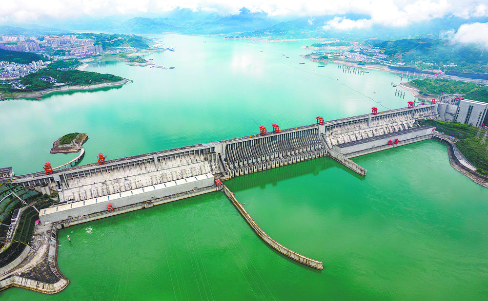 5月15日拍摄的水位下降后的三峡大坝(无人机照片)。