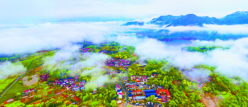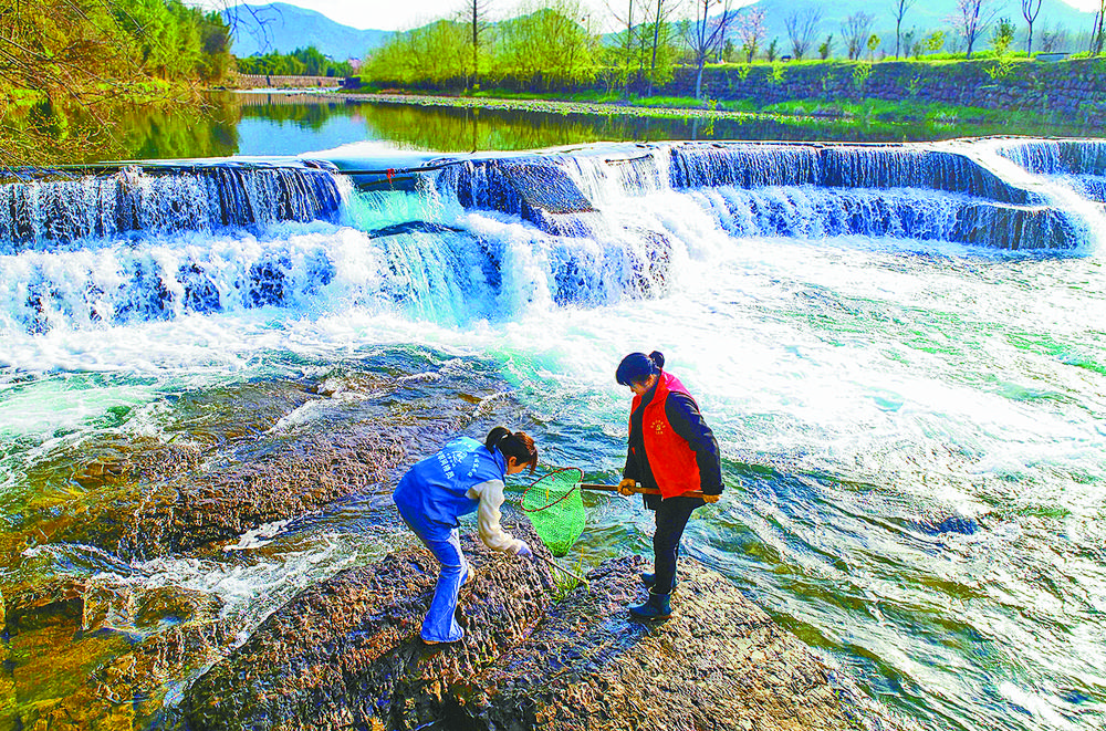 ⑥杭州市临安区天目山镇东关溪白鹤段,党员志愿者在清理水上漂浮物。近年来,浙江不断加大对河道污染源、生态修复、水质改善环境的综合整治力度,打造美丽舒适的人居环境。