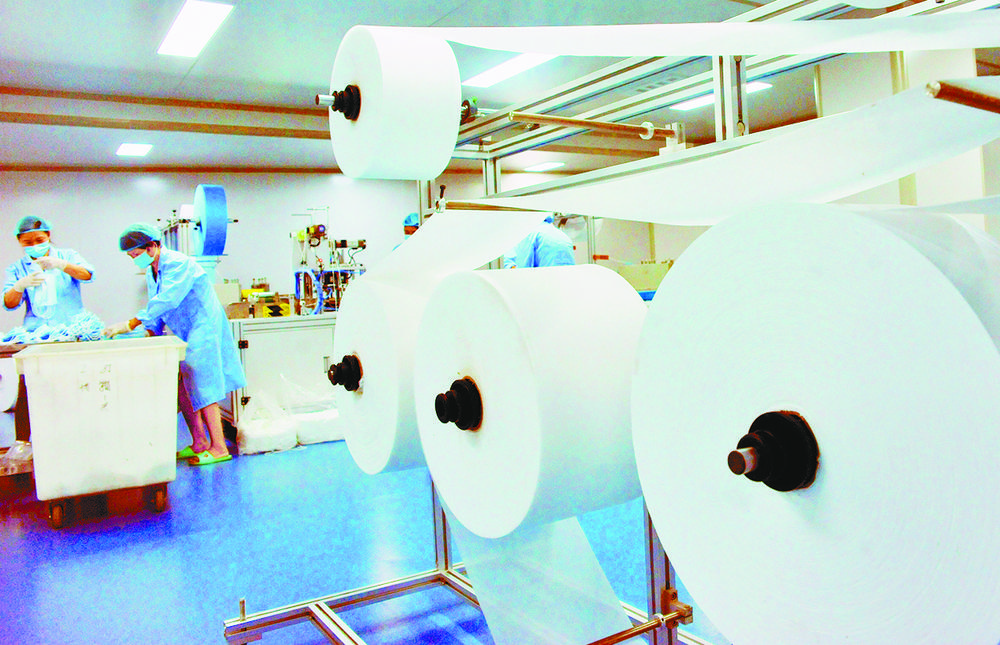 ②诸暨市富润控股集团富润宏泰医疗用品有限公司生产线,员工在赶制产品订单。 钱星江摄(中经视觉)