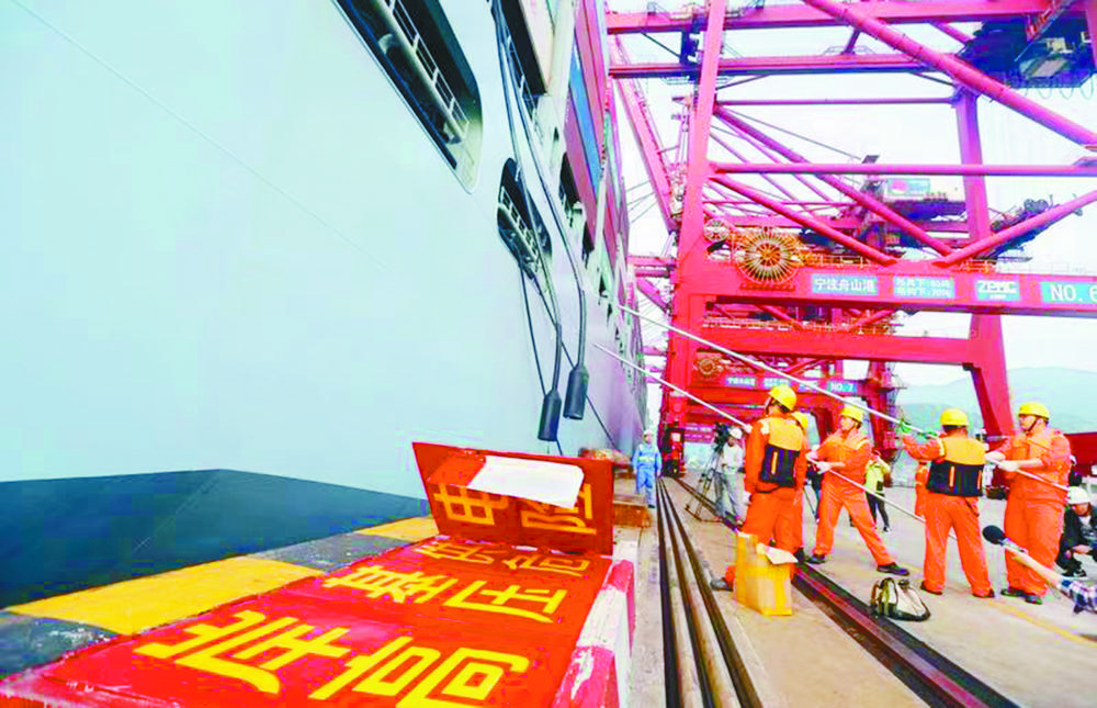 ③宁波舟山港集团与国家电网宁波供电公司合作建成国内首个高压变频岸电项目,船舶在靠港期间接通岸基电源,实现零油耗、零排放、零噪音。 王幕宾摄(中经视觉)