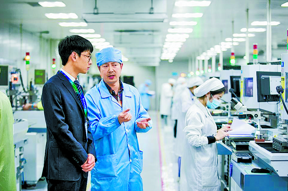 近日,浙江农信辖内绍兴恒信农商银行金融联络员(左一)来到浙江京东方显示技术有限公司了解企业资金需求情况。今年,该行在当地监管部门指导下,全面落实延期还本付息政策,通过开展小微企业专项走访,逐户摸排贷款临期客户,对小微企业贷款实行“应延尽延”。目前,该行已累计为21.04亿元贷款办理延期、无还本续贷。 沈淑萍摄(中经视觉)